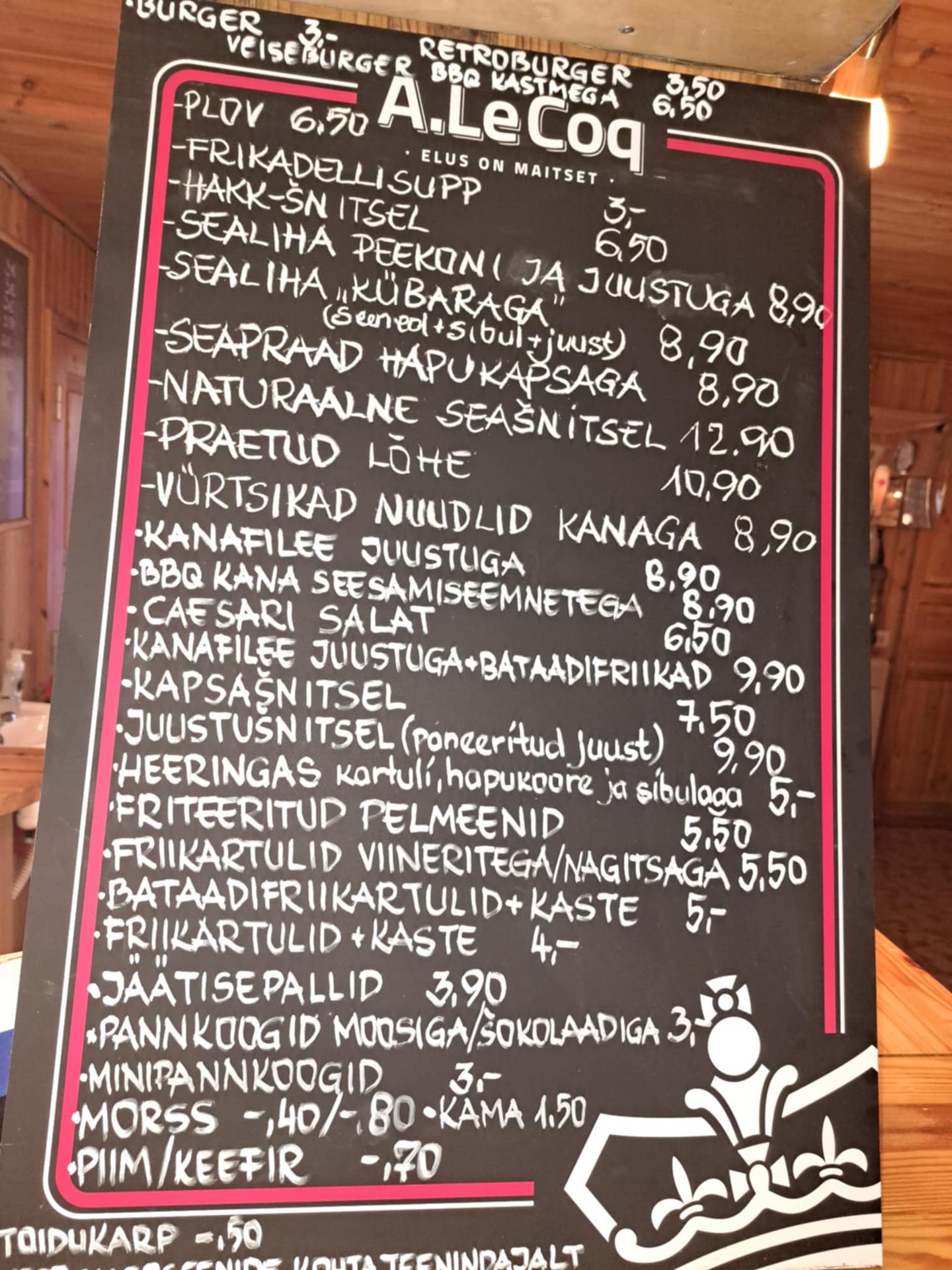Värske menüü on kirjutatud tahvlile ja hinnad võivad muutuda.